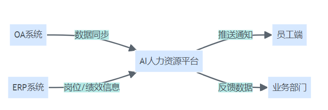 企业多业务系统与AI驱动人力资源平台集成流程结构图
