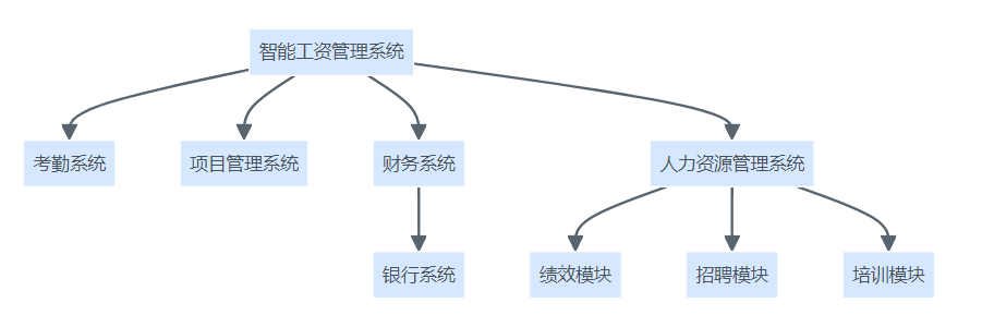 智能工资管理系统与考勤、财务、银行、人力资源等多系统集成的生态结构图