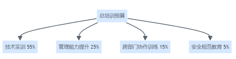 环保行业企业2025年培训预算结构图,显示技术实训、管理提升、跨部门协作与安全教育资金分配比例