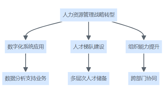 环保行业人力资源管理战略转型结构示意图,突出数字化系统、梯队建设和组织能力提升三大方向