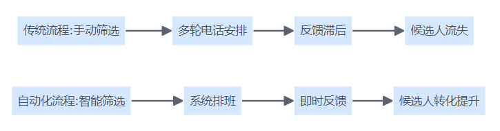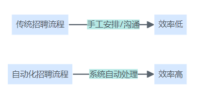 自动化与传统招聘流程效率对比图,展示手工与系统流程的差异