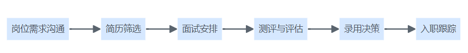 招聘流程结构图,展示从岗位需求到入职跟踪的完整流程节点