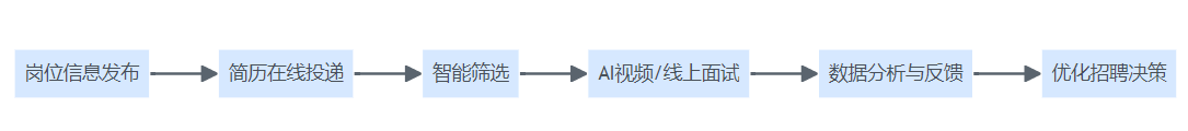 智能化招聘系统流程图,体现岗位发布、简历筛选、智能面试、数据分析到策略优化的全流程闭环。