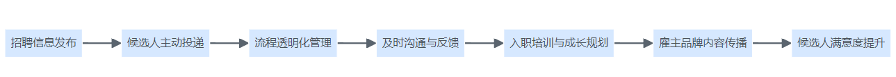 优化候选人体验与雇主品牌建设流程图,体现从招聘信息到入职成长与品牌传播的全链路体验提升。