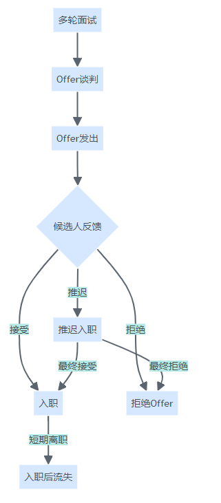 高端人才在面试、Offer、入职等流程中的各类流失节点结构图