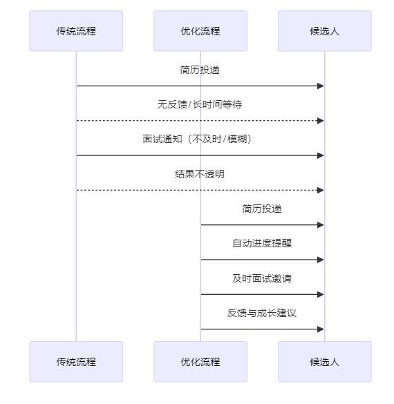在传统招聘流程中,候选人往往处于被动等待状态。简历投递后,反馈周期长,沟通信息不透明,面试安排模糊,最终结果只以一封“感谢信”收尾。这种“信息黑箱”式流程不仅让优质人才流失,也损害了企业的雇主形象。