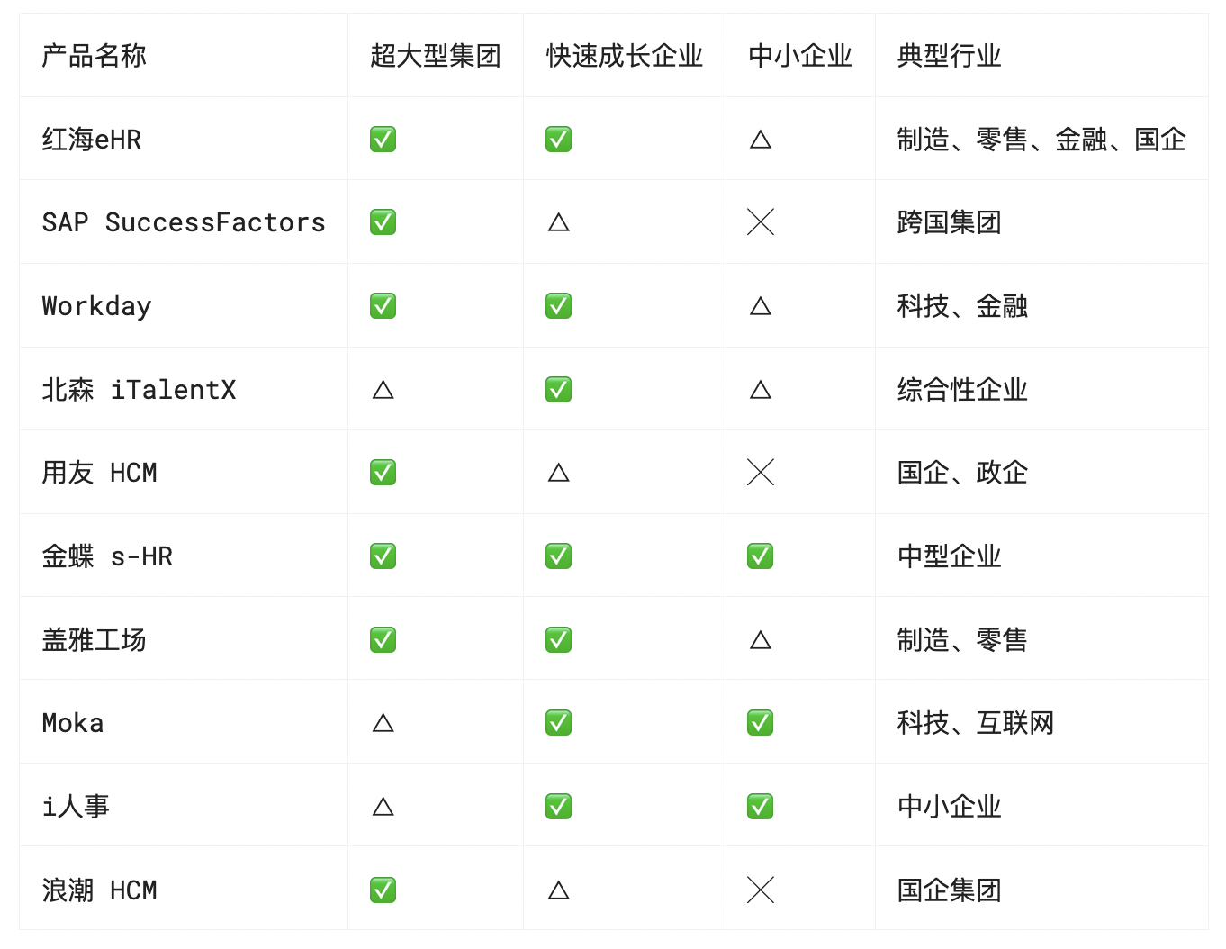 表2:Top10新一代HR系统场景适配建议表