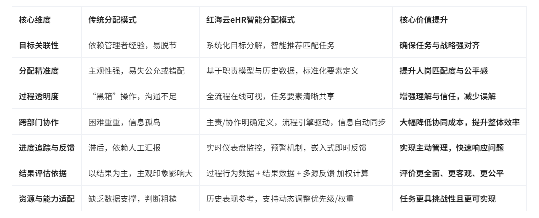 表:红海云eHR考核任务分配模式与传统模式对比