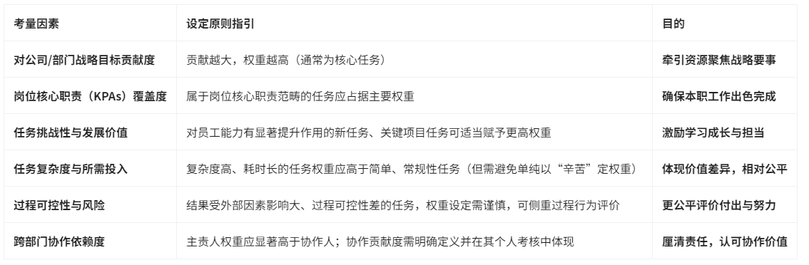 表:考核任务权重设定考量因素与原则示例