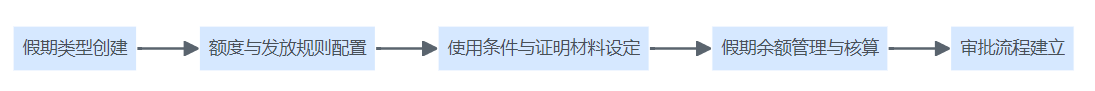 假期类型系统设置流程包括创建类型、配置额度与规则、设定使用条件、管理余额与核算、建立审批流程。