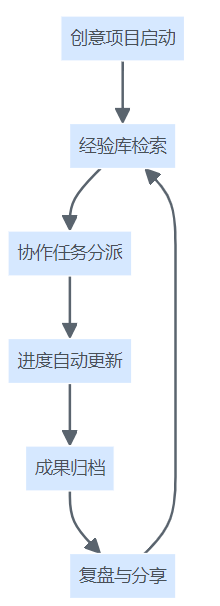 创意项目从启动、任务分派、进度更新到成果归档和复盘分享的知识管理闭环