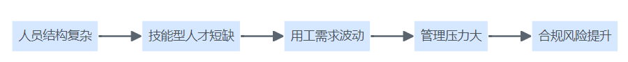 智能制造企业面临的用工结构、技能短缺、需求波动、管理压力和合规风险的流程图