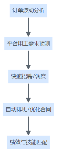 智能制造企业通过平台实现订单分析、用工需求预测、快速招聘与自动排班的流程图