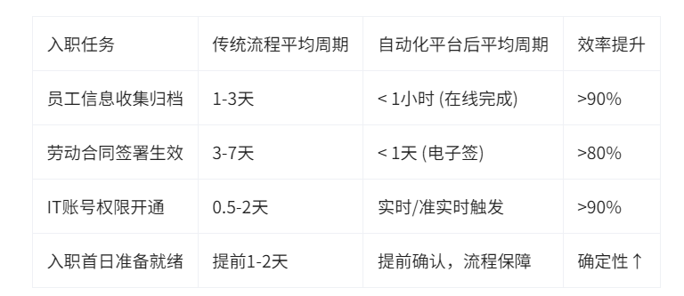 新员工信息准备周期显著缩短: 从过去的平均3-5个工作日,压缩至1个工作日内即可完成绝大部分线上填报与确认。