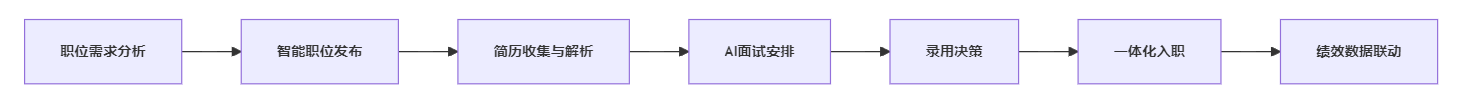 该图精要呈现从需求到入职的闭环,强调数据智能联动,与传统孤立系统形成鲜明对比。