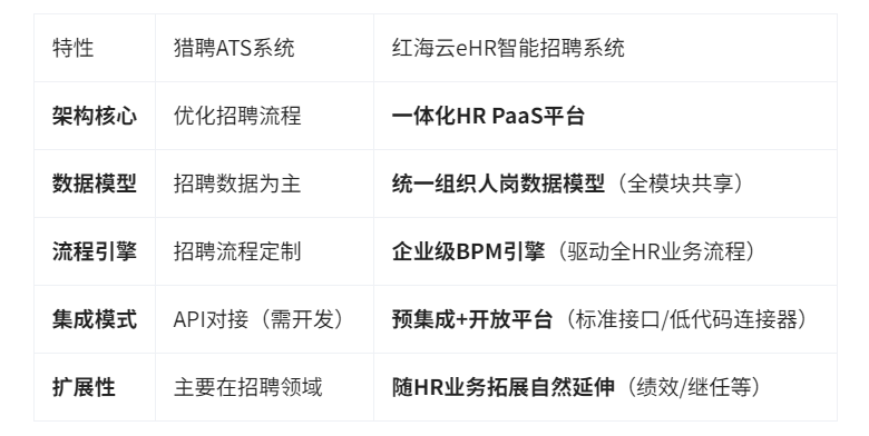 通过以上深度测评,猎聘ATS系统与红海云eHR智能招聘系统的定位与价值差异已清晰呈现:
