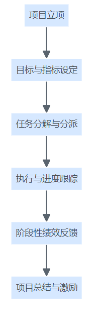 项目制绩效管理系统适配流程图,展示从项目立项到绩效反馈再到激励的完整环节。