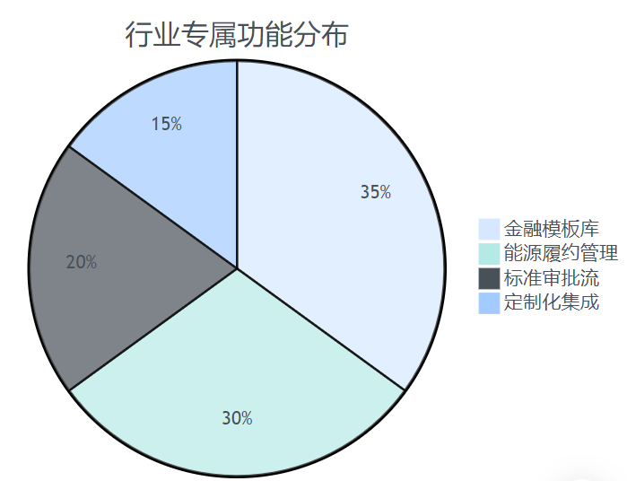 主流智能合同管理系统行业专属功能分布饼图,展示金融模板库、能源履约管理等核心模块占比。