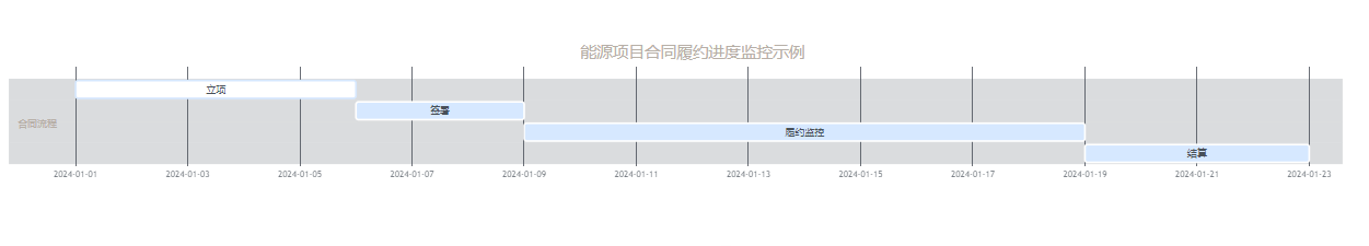 能源项目合同履约进度可视化甘特图,显示立项至结算关键环节。