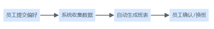 员工在排班系统中提交个人偏好,系统自动收集并生成班表,员工可确认或申请换班
