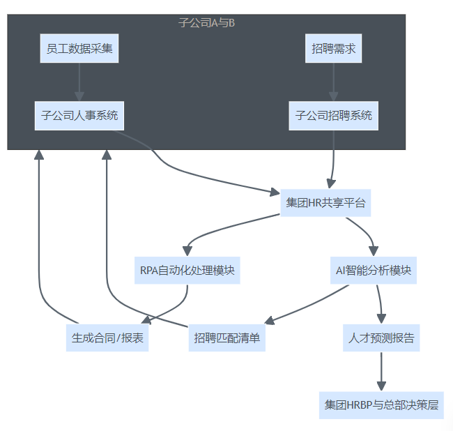 数字化与智能化驱动的多子公司HR共享平台数据流转示意