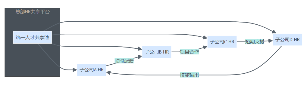 多子公司人才共享网络示意图(统一人才池 + 跨公司人才流动)