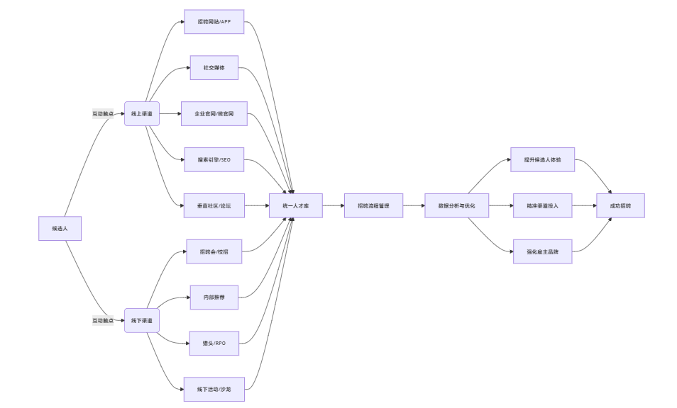 因此,2025年全渠道招聘的核心内涵已发生质的飞跃。它超越了“多渠道”(Multi-channel)简单并存的初级阶段,进化到“全渠道”(Omni-channel)的高度整合与协同。其本质在于:以统一的候选人体验为核心目标,打破各招聘渠道间的数据孤岛与流程壁垒,实现无论候选人通过何种渠道(如社交媒体看到职位、招聘平台投递简历、企业官网查看详情、线下活动交流、微信小程序沟通)与雇主互动,其信息、进度、体验都能被系统识别、无缝衔接并个性化延续。其核心价值在于:最大化触达与曝光:精准覆盖目标候选人活跃的各个角落;提升候选人体验与转化:提供便捷、一致且个性化的应聘旅程;优化招聘效率与质量:基于数据洞察进行渠道效果评估与策略动态调整;强化雇主品牌一致性:在所有触点传递统一且积极的雇主形象。