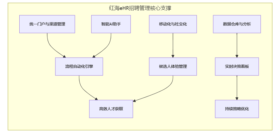 技术筑基,平台赋能:选择如红海eHR招聘管理这样具备全渠道整合能力、智能化引擎、强大分析功能和灵活部署集成特性的技术平台,为战略落地提供坚实底座。
