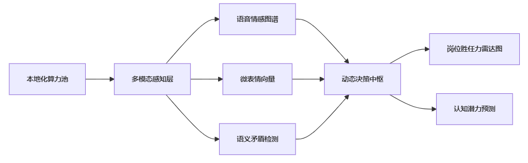 传统视频分析工具正被三维评估矩阵取代。某头部金融机构在红海eHR系统部署的下一代AI面试架构中,技术栈呈现明显的分层进化特征。如图1所示,基础层算力资源池通过本地化GPU集群实现每秒1200帧的图像处理能力,中间层的多源感知引擎可同步解析语音停顿频次、眼球移动轨迹及语义矛盾点,决策层的动态胜任力模型每48小时自动更新评估权重。