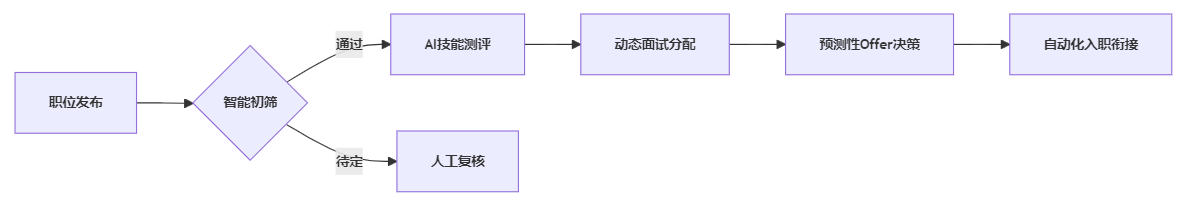 预测性决策支持: 基于历史类似岗位的绩效数据,系统预测候选人的90天留存率、18个月晋升概率。某AI芯片公司据此将试用期离职率压降至5%以下。