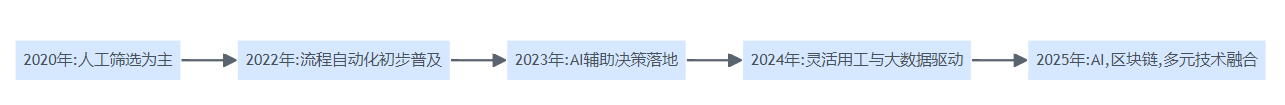 2020-2025年招聘效能分析技术发展趋势流程图,展示人工到智能多元融合的演进。