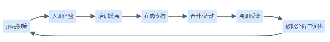 员工从招聘初筛到离职反馈的全生命周期体验数据追踪与优化闭环结构图。