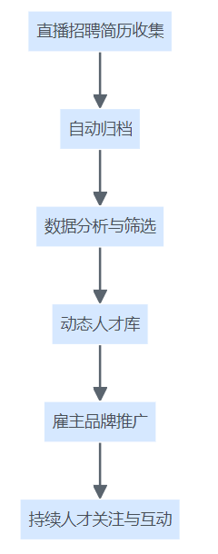直播招聘人才库管理结构图,体现自动归档、数据分析和雇主品牌推广的流程。