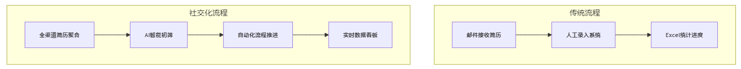 摘要:随着人才竞争白热化,企业招聘模式正经历从单向信息投放到双向互动的深刻变革。红海云调研数据显示:采用社交化招聘工具的企业人才触达效率提升40%以上,而传统招聘渠道的简历转化率近三年下降约27%。本文通过八大核心维度拆解两种模式的本质差异,解析新一代招聘管理系统如何实现双轨融合。
