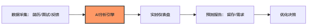 数据洞察赋能战略决策。人工招聘依赖HR经验报告,数据分散且滞后。例如,某企业年度招聘总结仅基于抽样,无法实时优化。AI招聘整合全流程数据,生成深度分析。红海eHR提供实时仪表盘,追踪转化率、来源质量等指标。