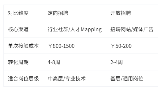 在VUCA时代的人才争夺战中,某知名制造业集团HR总监王敏曾面临这样的困境:技术岗位长期空缺导致项目延期,而常规招聘渠道涌入的简历匹配度不足30%。这个典型案例揭示了企业招聘策略选择的现实痛点——何时采用精准狙击式的定向招聘,何时启动广撒网式的开放招聘,成为影响组织人才供应链效能的关键决策。