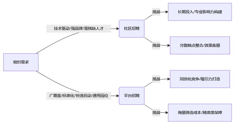 没有放之四海而皆准的招聘渠道。社区招聘的效能高度依赖于组织的“基因”和“投入度”。技术驱动型公司、开源软件企业、咨询公司、或者拥有强大雇主品牌和活跃员工社区的组织,更容易从社区招聘中获益。它要求招聘团队(甚至需要技术/业务Leader深度参与)具备在特定领域持续输出价值、建立专业影响力的意愿和能力。资源整合的挑战在于:如何有效管理分散在不同平台(微信群、论坛、线下活动)的社区触点?如何将社区中发现的人才线索高效纳入统一的招聘流程?如何衡量不同社区渠道的ROI?对于资源有限或招聘需求以通用岗位为主的中小企业,深度运营社区的性价比可能不高。