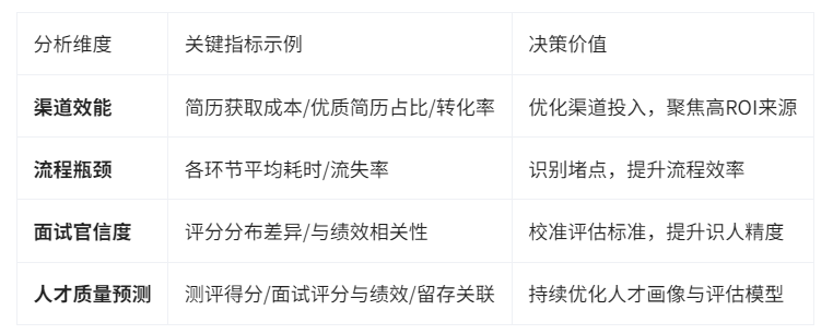 数据驱动非结构化洞察: 系统记录非结构化面试的关键笔记、印象标签,并与后续绩效数据关联分析,逐步将“直觉”转化为可描述的“成功特质”。