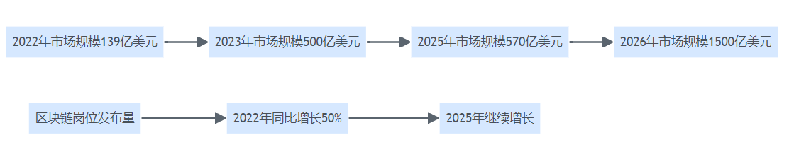 招聘平台数据显示,2022-2024年区块链开发岗位的发布量同比增长超过50%。到了2025年,区块链相关岗位不仅在数量上持续扩张,而且岗位类型更加多样化,涵盖技术开发、系统架构、合规风控、产品设计等多个方向。企业用人更关注候选人对行业业务逻辑的理解,推动人才市场不断升级。