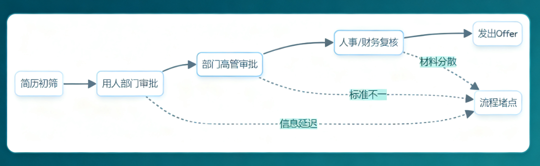 一家成长型互联网公司,业务快速迭代,经常需要“批量招人、快速到岗”。审批流程易因岗位需求变化、部门沟通滞后而反复修改,拖慢整体进度。