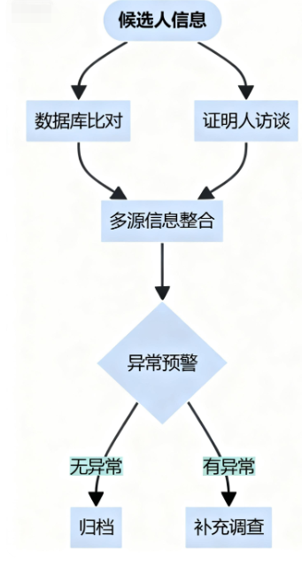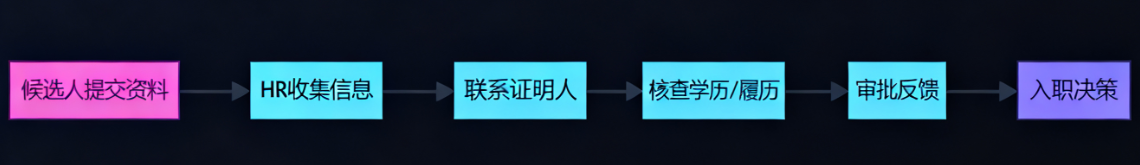 制定标准化调查流程,将背调分为“资料收集—证明人核查—信息比对—合规存档”等环节。通过统一调查模板、材料清单和审批机制,HR能快速启动背调任务,显著缩短整体用时。
