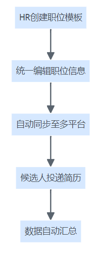 职位发布自动化流程结构图,展示从模板创建到多平台同步、简历收集与数据汇总全过程。