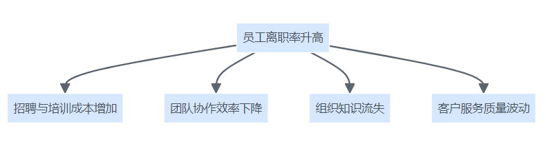 在实际运营中,员工离职率的变化会带来一系列连锁反应: