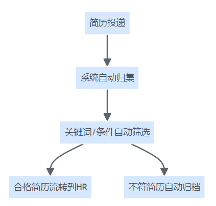 自动化筛选流程图,展示简历投递到自动筛选与归档的高效路径。