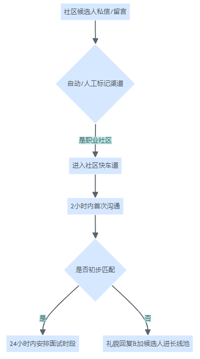 职业社区的候选人,多半是碎片时间刷内容,决策窗口很短。流程若延迟、沟通不顺畅,很容易流失。